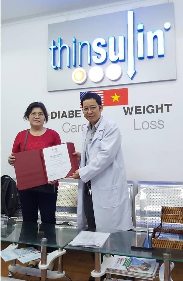 Thế mà chỉ sau 3 tháng áp dụng phương pháp giảm cân, giảm đường huyết Thinsulin (sau này gọi là chương trình DrThin), chị LV đã giảm được 8kg, HbA1C xuống còn 5,95%, men gan, mỡ máu đã về bình thường ! Và dĩ nhiên chị cảm thấy người khỏe mạnh, nhẹ nhàng, gọn gàng, và tinh thần lạc quan, tự tin hơn rất nhiều! Chị khoe bây giờ chị chỉ còn uống có 2 viên thuốc mỗi ngày...