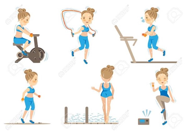 - Loại hình thể dục có tác dụng giúp giảm cân là Cardio, gồm các môn vận động toàn thân phổ biến như là aerobic, đi bộ, chạy bộ, đạp xe, bơi lội, nhảy dây…