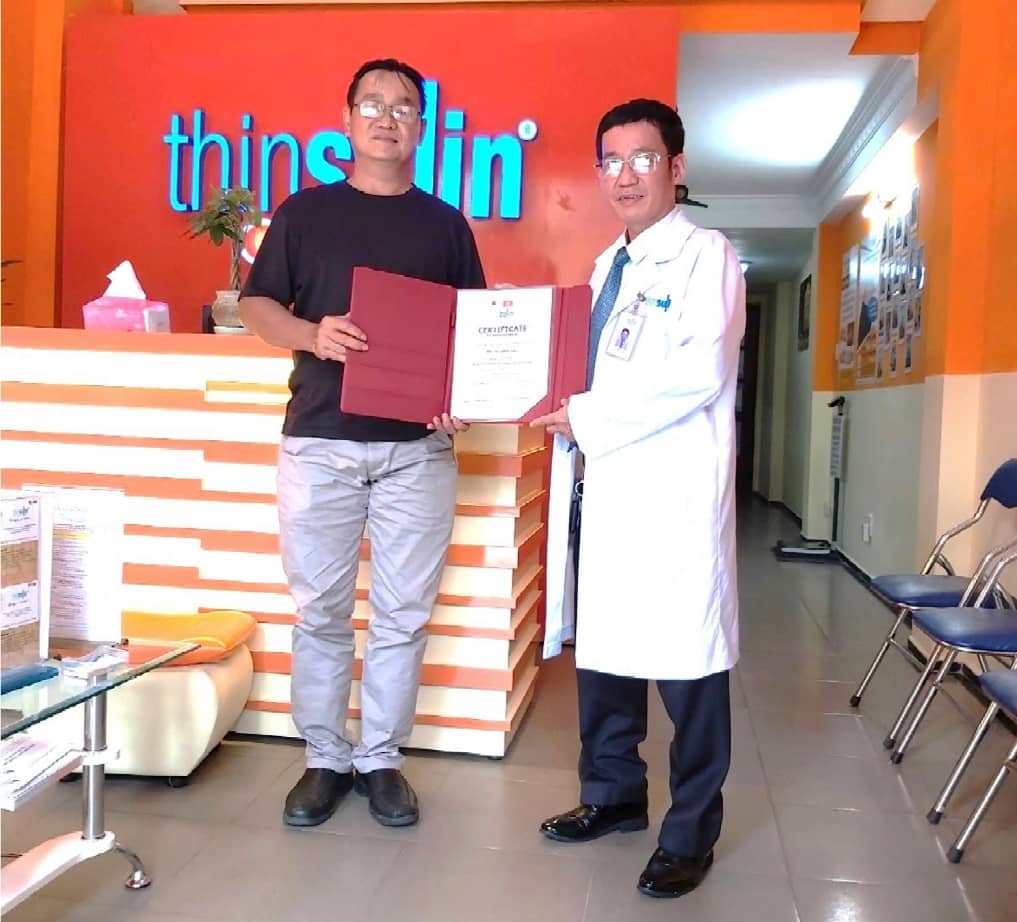 Mỗi tuần, trong suốt 12 tuần liên tục áp dụng chương trình DrThin, anh H.A.T được các Bác sĩ của chương trình DrThin tư vấn trực tiếp, một kèm một, nhằm cung cấp những kiến thức khoa học về dinh dưỡng cơ bản dựa trên nguyên lý “Insulin tăng – cơ thể tích trữ mỡ, Insulin giảm – cơ thể đốt mỡ” để anh có thể dựa vào đó biết cách chọn lựa cho mình những loại đồ ăn, thức uống đa dạng, phong phú vừa phù hợp với sở thích, điều kiện của cá nhân mình nhưng vẫn đạt được mục tiêu giảm đường huyết và giảm cân nặng một cách dễ dàng, thoải mái. Anh thật sự được ăn no, ăn mạnh khỏe trong suốt 3 tháng ăn Thin chứ không bị bắt nhịn ăn, hay bỏ bữa, để rồi bị đói bụng, mệt lả như các phương pháp ăn kiêng khác.
